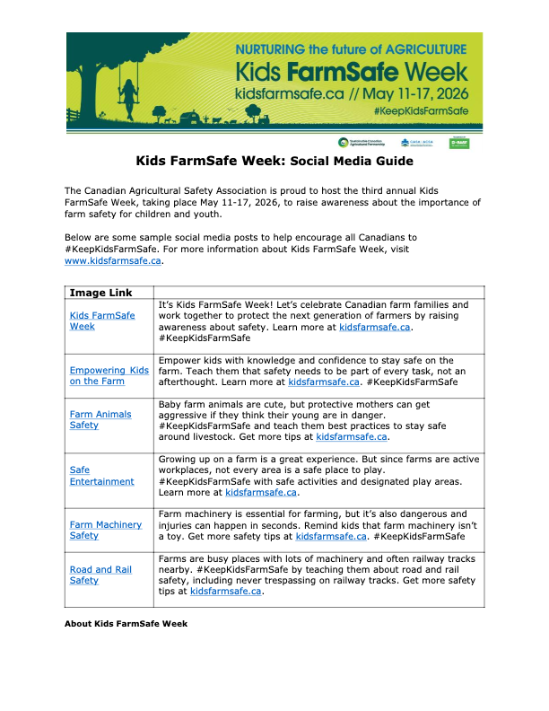 These stories, public service announcements and graphics are free to reprint and share. Please credit the Canadian Agricultural Safety Association.
